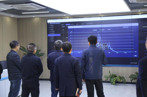 調研中,胡春風主任聽取了平臺建設匯報。目前,該虛擬電廠平臺已完成“數字基座+能源資源”、能碳管理、聚合交易三大核心平臺的開發部署并投運,具備風光儲資源評估、負荷預測、電力交易、能碳監測等核心功能。平臺已聚合13家用戶負荷,總聚合容量達34MW,其中可上調負荷12MW,可下調負荷23MW,通過數據可視化實現了全量資源的實時聚合與全環節運營管控,為參與需求響應及輔助服務提供了有力支撐。